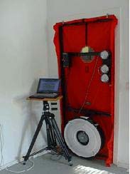 Le système « BlowerDoor » permet la mesure d'infiltrométrie du bâtiment. Son kit de base, destiné aux habitations et appartements unifamiliaux, pèse une trentaine de Kg et est constitué d’une armature amovible adaptable à installer dans l’ouverture de porte existante. Le montage de ce kit prend environ un quart d’heure.